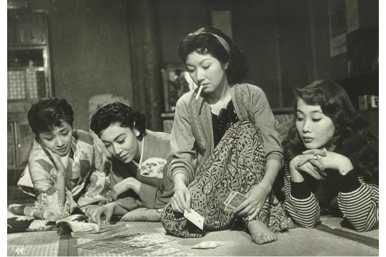 戦後の色街を舞台に、様々な境遇にある女たちがしたたかに懸命に生き抜く。市川に住んでいた永井荷風の『にぎりめし』『春情鳩の街』『渡鳥いつかへる』を原作に、久松静児が監督。荷風の生前に映画化された最初の作品となる。戦争中に妻子と生き別れ、なじみの女の庇護の下、色街の店「藤村」の主人になった伝吉(森繁)。そこの女たちはみな苦しい事情を抱えていた。やがて伝吉は妻・千代子と再会するが、千代子は他の男と暮らしていた。